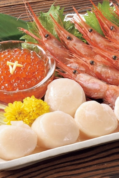 お刺身で楽しめる甘えび、甘さが自慢のほたてなど。海鮮三昧の贅沢セットです。ご自宅で海鮮丼や盛り合わせにしてお楽しみください。